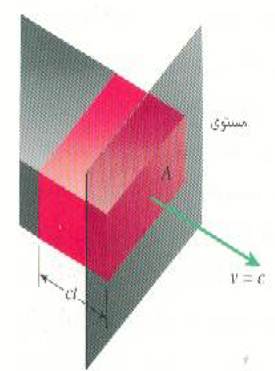 الشكل 1)): يمر حجم مقداره Act من حزمة الموجات عبر المستوى في زمن مقداره t.