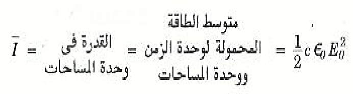 إن الشدة التي حسبناها الآن ذات قيمة لحظية لأننا اعتبرنا t كسراً صغيراً جداً من الزمن الدوري للموجة. اما متوسط الشدة عبر كل دورة فهو على درجة أكبر من الأهمية، ولحسابه نحتاج إلى معرفة القيمة المتوسطة للمقدار E2 في دورة واحدة. وقد وجدنا عند دراسة التيارات المترددة أن متوسط مربع أي مقدار يتغير جيبياً هو نصف مربع السعة، أو E2 = ½E20.