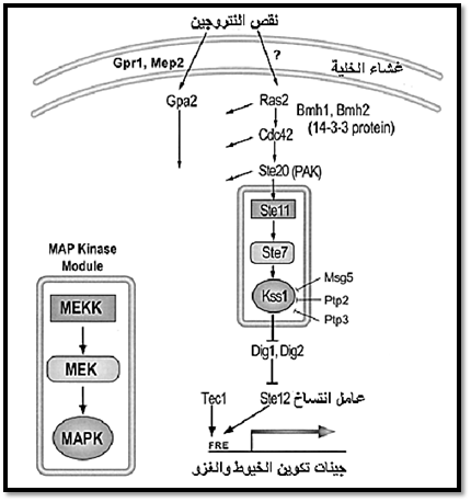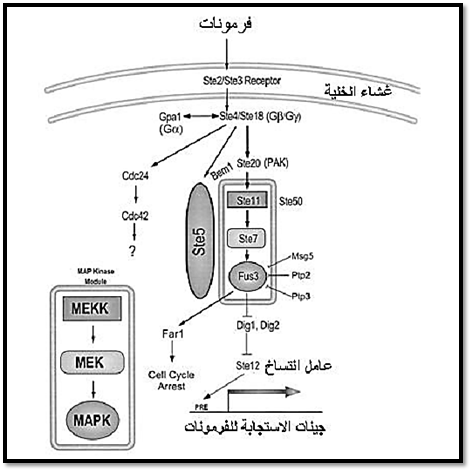 وتؤثر الفرمونات بواسطة مسارات MAPK الذي تتداخل بروتيناته للقيام بنقل اشارات التعبير عن الجينات المطلوبة وهي الموضحة في الشكل (1)