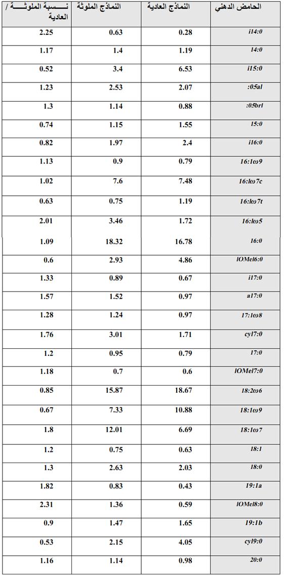 ويلاحظ زيادة الحامض الدهني 10Me18 : 0 في التربة وهذا يعني زيادة الاكتينومايسيتات في الترب الملوثة اذ ان هذا الحامض الدهني يخص هذه المجموعة.