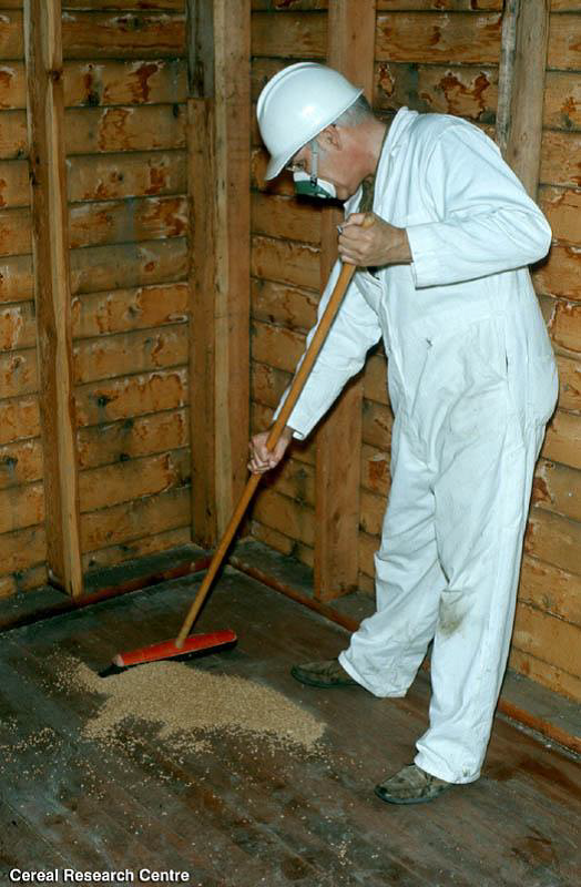 5- وضع تراكم الحبوب التالفة (الكناسة) في المستودعات او بالقرب منها وكنس الجدران والارضيات قبل الخزن وحرق نواتج الكنس او ازالته فورا بعيد عن التخزين.