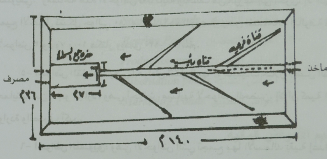 - المصرف الداخلي: الهدف من إنشائية لصرف الفائض من ماء الحوض الى المصرف الخارجي من خلال فتحة الصرف. والمصرف يكون على شكل حرف (U) بانحدار تدريجي باتجاه المصرف الخارجي.