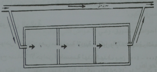 1- الاحواض المتتالية: وهي احواض يتم تغذيتها عن طريق قناة تغذية واحدة تصب في الحوض الاول ليغذي الحوض الثاني بعد ملئه بالماء ثم الذي يليه وهكذا...