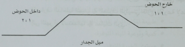 ويتم تصميم الجدران على محيط القاع المجهز بالميل اللازم. ويراعي اثناء عمل الجدران ما يلي: