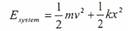 الحالة (2): الجسم يصطدم ويستمر بالضغط عليه مما يولد طاقة وضع داخل النابض ، us = ½ kx2 ، حيث x تمثل مقدار إزاحة النابض عن نقطة الاستقرار. وبذلك تكون الطاقة الميكانيكية للمنظومة تساوي: