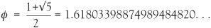 which can be multiplied out to give x2 = x + 1. An approximate solution is 1.618. We can easily check this. If you type 1.618 into a calculator and multiply it by itself you get 2.618 which is the same as x + 1 = 2.618. This number is the famous golden ratio and is designated by the Greek letter phi, Φ. Its definition and approximation is given by and this number is related to the Fibonacci sequence and the rabbit problem.