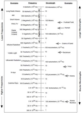 The Electromagnetic Spectrum: Wavelength/frequency chart