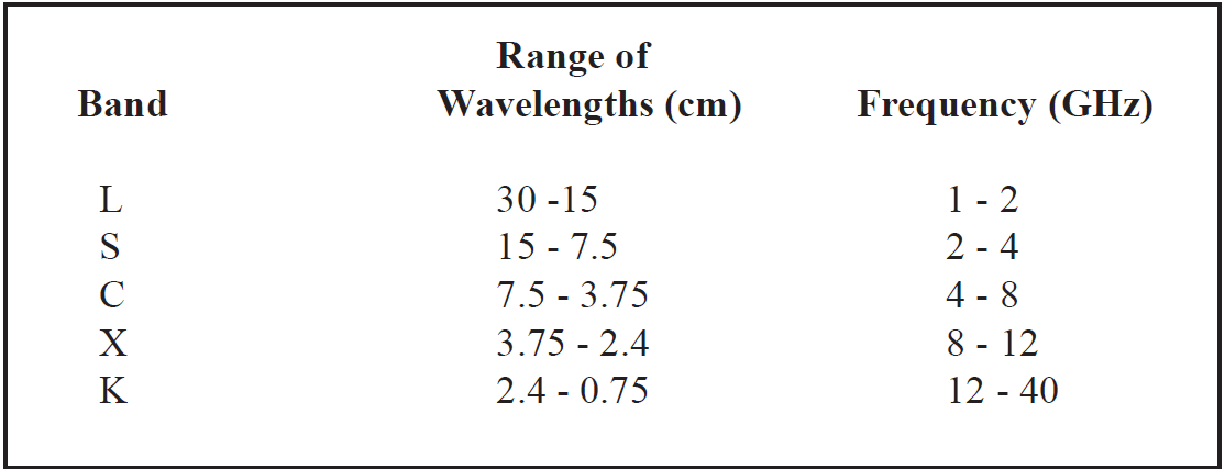Electromagnetic radiation with frequencies between about 5 kHz and 300 GHz is referred to as radio frequency (RF) radiation. Radio frequencies are divided into ranges called “bands,” such as “S-band,” “X-band,” etc. Radio telescopes can be tuned to listen for frequencies within certain bands.