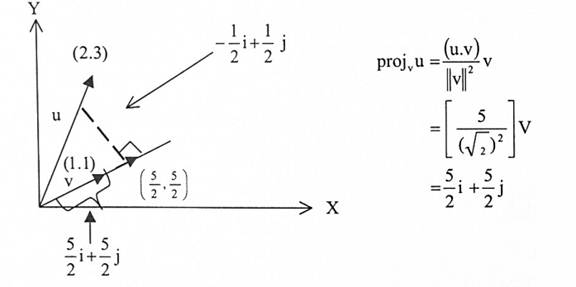 ليكن u = 2i + 3j ، v = i+j، احسب Projvu