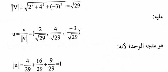 4- أوجد متجه الوحدة باتجاه المتجه v = (2,4,-3)