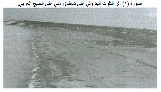 وتزداد الصورة قتامة إذا ما تذكرنا أن أكبر حقول البترول في العالم تتركز حول الخليج العربي بمساحته المحدودة ( ٢٢٥ ألف كيلو متر مربع ) إلى جانب تركز إعداد كبيرة من مصانع ومعامل تكرير البترول في المدن المطلة عليه مثل رأس تنورة والمنامة وأبو ظبي وغيرها، وكل هذه المصانع لها نفاياتها البترولية التي تنقل عن عمد أو غير قصد إلى مياه الخليج، وتوضح الصورة رقم (1) , فعلى سبيل المثال نجد معامل تكرير البترول في رأس تنورة بالسعودية تسرب كل عام إلى مياه الخليج العربي أكثر من ٢٧٠٠ طن من زيت البترول, وفي خليج المكسيك حدث تسرب في أحد آبار البترول البحرية الاستكشافية على بعد ٨٠ كيلو متر من الساحل، وفي محاولة لتعويمه اشتعلت فيه النيران ونتج عن ذلك اختلاط الزيوت والغازات بالمياه القريبة من القاع (عند عمق ٣٦٠ مترا) وكان ذلك بداية لأكبر تسرب بترولي في تاريخ الاكتشافات البترولية، وقد قدرت الكمية المتسربة في البداية ب ٤٥٠٠ طن يوميا وعندما أغلق البئر تماما في ٢٣ مارس ١٩٨٠ كان قد تسرب ٤٧٥ ألف طن من البترول، وقد أدت هذه الكمية إلى تلوث الشواطئ البعيدة لخليج المكسيك، بالإضافة إلى المنطقة الساحلية التي تتكون من بالجات رملية ولاجونات مغلقة Enclosed Lagoons وجزر مرجانية , وقد تشكل البترول في بقعة زيتية تراوح سمكها ما بين سنتيمتر واحد وأربعة سنتيمترات بطول ٦٠ كيلو متر وعرض خمسة كيلو مترات.