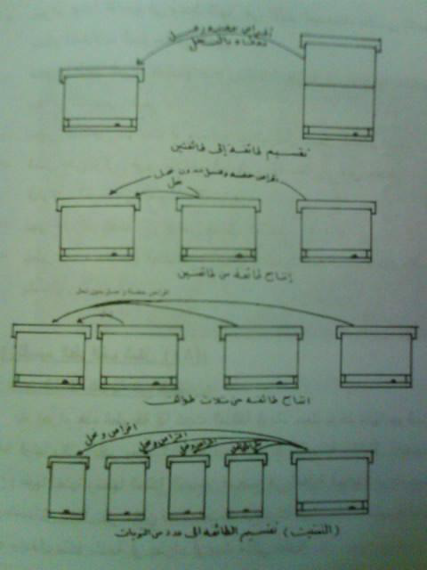 1) زيادة عدد الطوائف بالمنحل وذلك عن طريق تقسيم الطوائف القوية بالمنحل شريطه أن تكون المنطقة تستوعب هذه الزيادة.