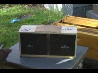 إعداد الصندوق الخشبي ووضعه فوق الميزان بعد وضع قفص إرسال الملكات وبه الملكة معلقا بداخله، يوضع قمع معدني داخل فتحة الصندوق، وبعد فحص الطائفة المراد أخذ النحل منها تحجز ملكتها على قرص تحت قفص نصف كرة وتوضع بجوار أحد جانبي الخلية ثم تؤخذ الأقراص المغطاة بالنحل تهز فوق القمع مع التدخين الخفيف ثم تعاد الأقراص الفارغة لخليتها حتى وصول مؤشر الميزان إلى الوزن المطلوب وهو يتراوح بين (800-1200 جرام)، يرفع القمع وتوضع مكانه الغذاية الممتلئة بالمحلول السكرى المركز وكذلك الإسفنج المشبع بالماء، ثم تثبت كل خمسة صناديق معا بسدابات خشبية ليسهل نقلها إلى منحل المشترى.