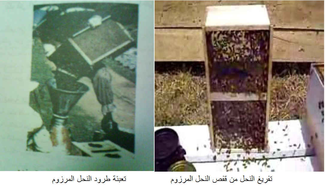 إنتاج طرود النحل المرزوم: المقصود بالنحل المرزوم هو تداول نحل بدون أقراص شمعية وذلك بالوزن.