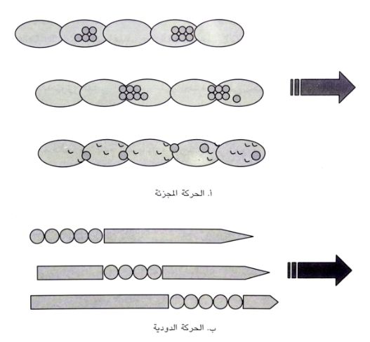 شكل 1 : حركة الأمعاء الدقيقة أ. المجزئة – ب. الدودية