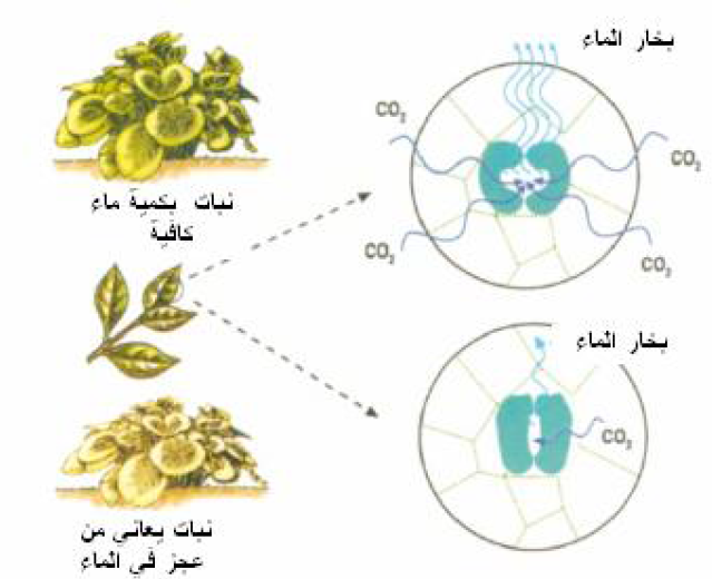 عندما تكون كمية الماء في النبات مرتفعة، كما يحدث مثلا بعد الري، تبقى الفوهات المسامية جد مفتوحة مما يجعل النبات ينتح كمية كبيرة من الماء.