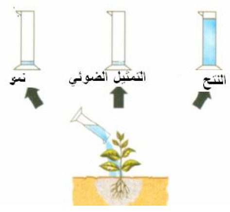 وكمية الماء اللازمة لعملية التمثيل الضوئي ما هي إلا جزء ضئيل من الماء الذي يمتصه النبات، كما أنه يخصص جزء ضئيلا لنموه.