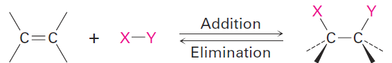 Just as the chemistry of alkenes is dominated by addition reactions, the preparation of alkenes is dominated by elimination reactions. Additions and eliminations are, in many respects, two sides of the same coin. That is, an addition reaction might involve the addition of HBr or H2O to an alkene to form an alkyl halide or alcohol, whereas an elimination reaction might involve the loss of HBr or H2O from an alkyl halide or alcohol to form an alkene.