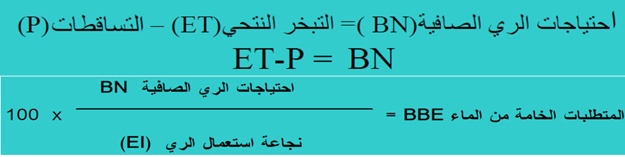 عادة ما تستعمل الكميات المساوية للاحتياجات الخامة في الحالات المذكورة آنفا، إذ أن استعمال كميات أكبر من الماء يمكن أن تتسبب في ضياعه بسبب الرشح العميق أو بصرف المياه، أما إذا ما استعملنا كميات ما دون ذلك فإننا نعرض المزروعات لضعف التبخر النتحي مما يمكن أن يؤثر سلبيا على الإنتاج.