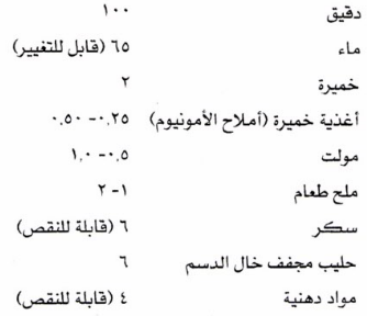 ويدخل في تصنيع الخبز هنا المواد الآتية بالكيلوغرام:
