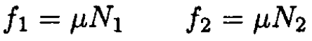 where N1 and N2 are normal forces and f1 and f2 are friction forces at the first and second rollers, respectively.