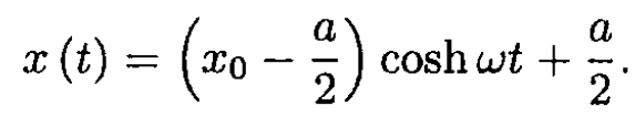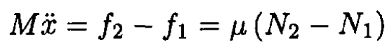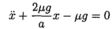 Again from (1') and (2') we can get ẍ - ω2x = -μg, ω2 = 2μg/a. The solution of this equation is