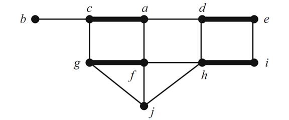 An example of an M-alternating path is c, a, d, e, i. An example of an M-augmenting path is j, g, f, a, c, b. The reason for calling such a path “Maugmenting” will become apparent soon.