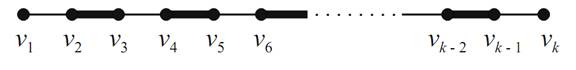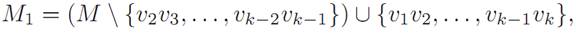 v1,v2,...,vk is an M-augmenting path. Due to the alternating nature of M-augmenting paths, it must be that k is even and that the edges v2v3, v4v5, ... , vk−2vk−1 are all edges of M. We also see that the edges v1v2, v3v4, ... , vk−1 vk are not edges of M (Figure 1.2).