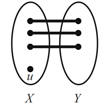 let M be a maximum matching. Suppose that u ∈ X is not saturated by M (see Figure 1.5).Define the set A to be the set of vertices of G that can be joined to u