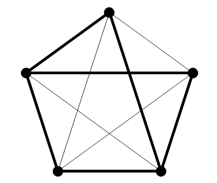 FIGURE 1.3. A 2-coloring of the edges of K5.