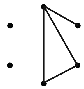 How about R(2, 4)?We need to know the smallest integer n such that every 2- coloring of the edges of Kn contains either a red K2 or a blue K4. We claim that R(2, 4) = 4. To show this, we must demonstrate two things: first, that there exists a 2-coloring of K3 that contains neither a red K2 nor a blue K4, and second, that any 2-coloring of the edges of K4 contains at least one of these as a subgraph. We demonstrate the first point. Consider the 2-coloring of K3 given in Figure 1.2 (recall that red is thick and blue is thin—the edges in this coloring are all blue). This coloring of K3 does not contain a red K2, and it certainly does not
