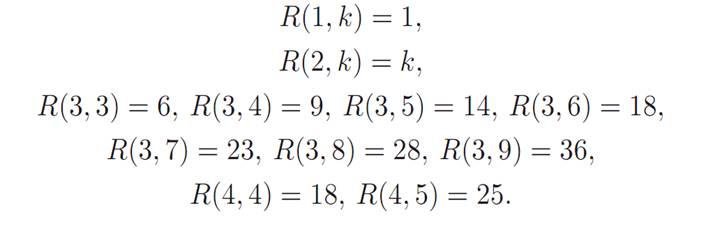 Some known Ramsey numbers are listed below.