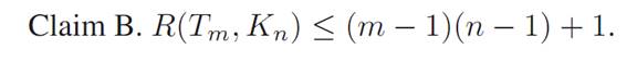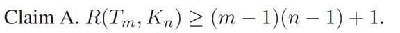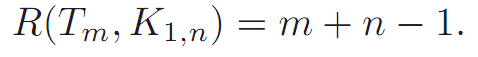 Proof. If m =1 or n =1,then R(Tm,Kn)=1 and the result holds. Assume then that m and n are both at least 2.
