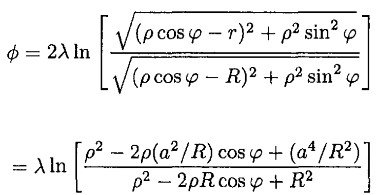 where λ' is the linear charge density and r is the distance from the axis of the cylinder to the line charge (see Figure 1.2). The potential due to the charged wire, similarly, is