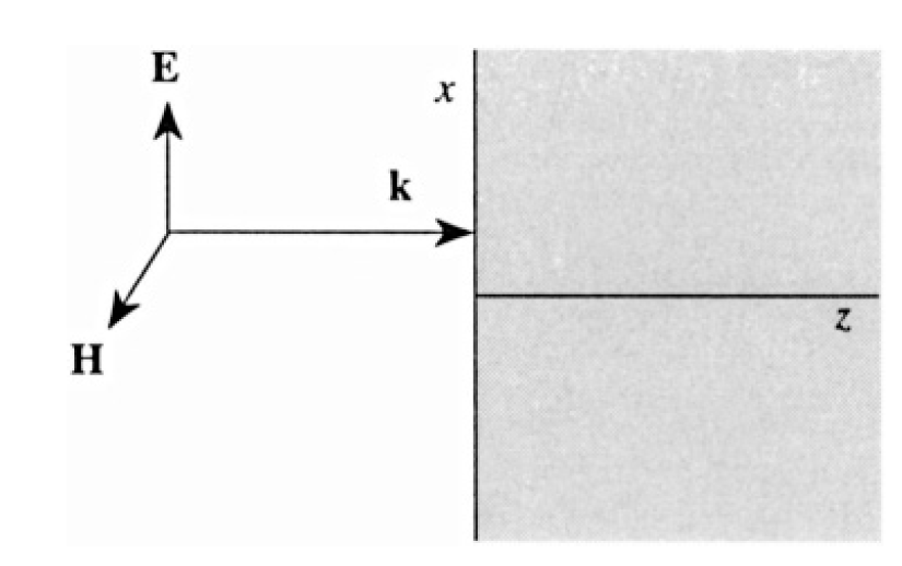 Assuming that the electric field in the incident wave is polarized in the x direction and the magnetic field in the y direction, and the amplitude of the field outside the conductor is E0, we can obtain the fields inside Ht, Et