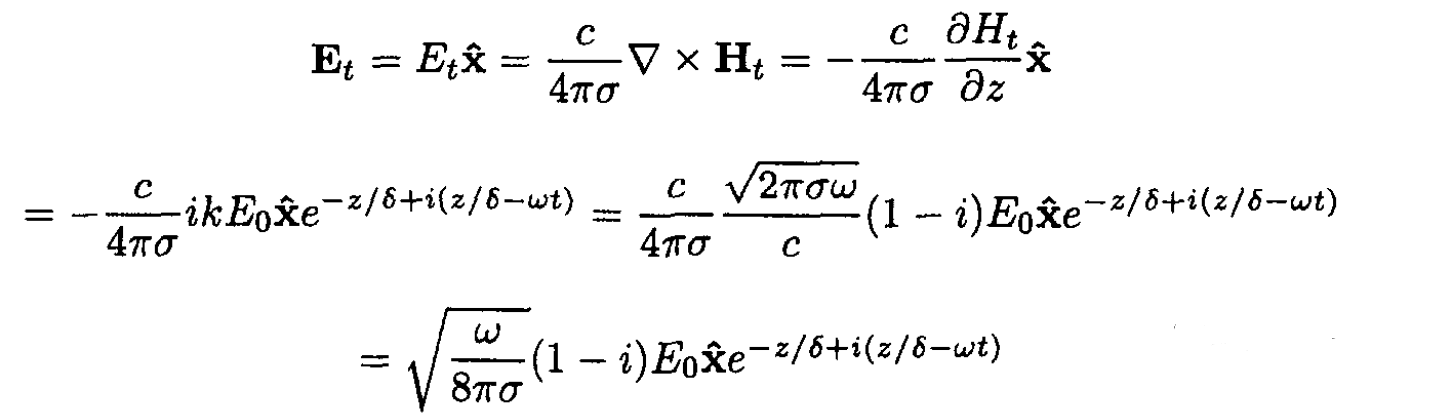 is the characteristic penetration depth of the field (skin depth). From the boundary conditions Hin1 = Houtt = E0, we have