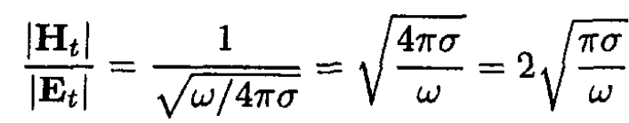 b) The ratio of the amplitude of the magnetic field to that of the electric field inside the metal from (13) and (15) is in this approximation