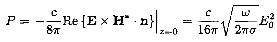 c) The power per unit area P transmitted into the metal is given by the flux of the Poynting vector: