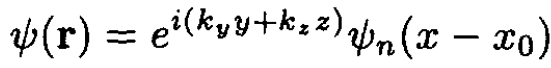 One can show easily that py and pz each commute with the Hamiltonian and are constants of motion. Thus, we can write the eigenfunction as plane waves for these two variables, with only the x-dependence yet to be determined: