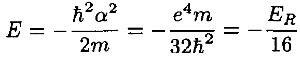 The answer is one sixteenth of the Rydberg, where ER is the ground state energy of the hydrogen atom. The parameter α = 1/4a0, where a0 is the Bohr radius.
