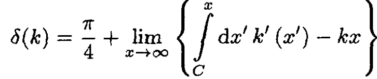 The following formula is for the phase shift in one dimension where the particle is free on the right (V(x) → 0 as x → ∞) and encounters an impenetrable barrier near the origin: