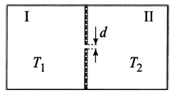 A container is divided into two parts, I and II, by a partition with a small hole of diameter d. Helium gas in the two parts is held at temperatures T1 = 150 K and T2 = 300K, respectively, through heating of the walls (see Figure 1.1).