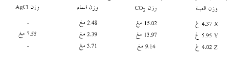 - احسب النسب المئوية التركيبية لكل من X، Y، Z، من نتائج التحليل التميكانيكية: