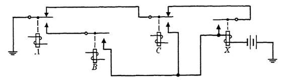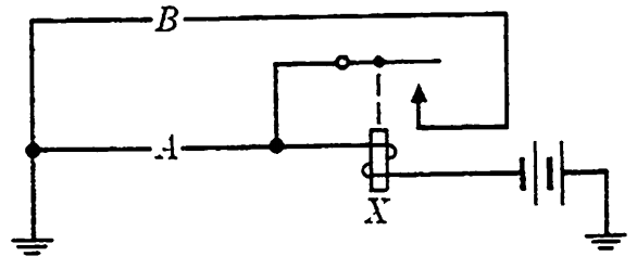 Figure 1-1 illustrates the most general kind of control circuit for the operation of a singly wound relay X. It consists of two circuits, the first of which we will refer to as the operate path. This is the circuit which represents the conditions for which it is desired that the relay will operate initially. In the figure, this circuit is shown as a single letter A, which may correspond to a single contact or to a complicated circuit. The second circuit controlling the operation of the relay X, which we will refer to as the hold path, represents those conditions for which it is desired that the relay will remain in operation after once being operated. This circuit will always contain a make contact on relay X and may contain a circuit in series with this contact, designated by the single letter B in the figure.
