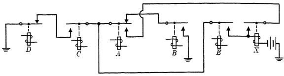 EXAMPLE 1. A relay X is to be controlled in the following way from inputs A, B, C, D, and E.