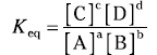The capital letters stand for the chemical species, and the small letters represent the coefficients in the balanced chemical equation. The equilibrium constant (represented as Keq) is mathematically defined as