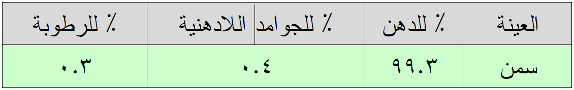 مثال لنتيجة تحليل عينة سمن جاموسي
