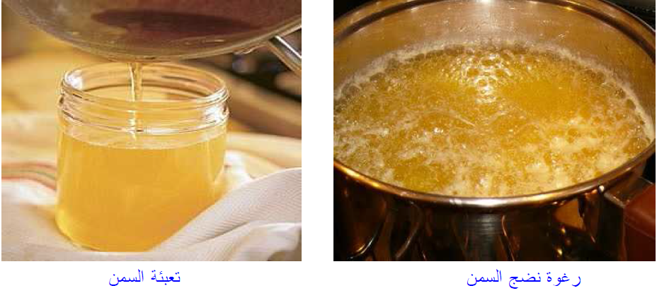 ١- غلى الزبد أو القشدة وهى الشائعة في مصر والهند وغيرها من بلدان المناطق الحارة.