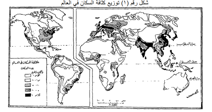 وكثافة السكان الغالبة كما في جنوب شرق آسيا ومصر وبعض دول اوربا (شكل 1) أدت الى ضرورة التركيز على الزراعة والاستفادة من كل شبر من الأرض الصالحة للزراعة، والى زراعة الغلات التي تعطي انتاجا وفيرا لمواجهة الحاجة الشديدة للغذاء، والى زراعة المحاصيل الت تحتاج الى الايدي العاملة الوفيرة مثل الأرز والشاي والمطاط والقطن، كما أدت الى تفتت الملكية، الامر الذي يتعذر معه استخدام الآلات بصورة كبيرة كما يحدث في الملكيات الكبيرة، ولذلك ساد نمط الزراعة الكثيفة في هذه المناطق. اما في المناطق المتوسطة السكان كما هو الحال في الولايات المتحدة الامريكية وكندا وأستراليا فتسود الزراعة الواسعة في معظم ارجائها، بينما تسود الزراعة المتنقلة في بعض المناطق القليلة السكان كما في بعض المناطق الافريقية التي تعتمد على الزراعة البدائية بهدف الاكتفاء الذاتي.