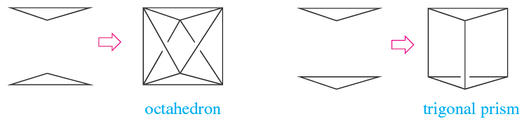 While the vast majority of 6-coordinate complexes containing simple ligands are octahedral, there is a small group of d0 or d1 metal complexes in which the metal centre is in a trigonal prismatic or distorted trigonal prismatic environment. The octahedron and trigonal prism are closely related, and can be described in terms of two triangles which are staggered (1.1) or eclipsed (1.2).